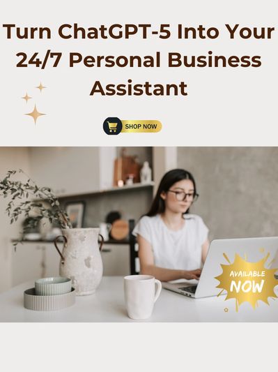 This powerful digital product includes 250 plug-and-play prompts that transform ChatGPT-5 into a full-service business assistant, marketer, content writer, strategist, and operations manager.